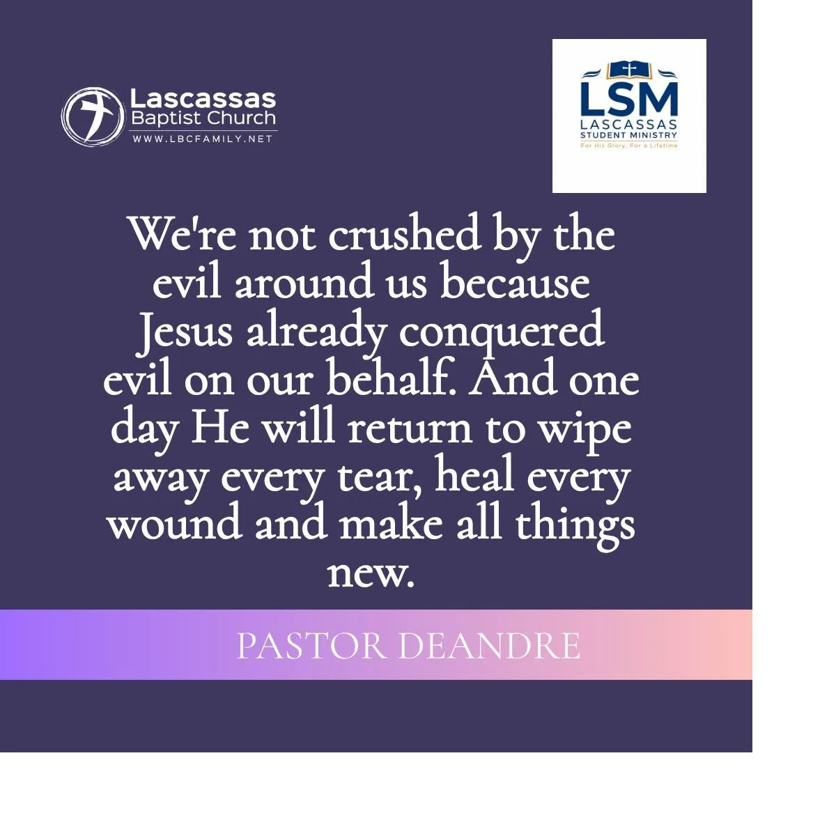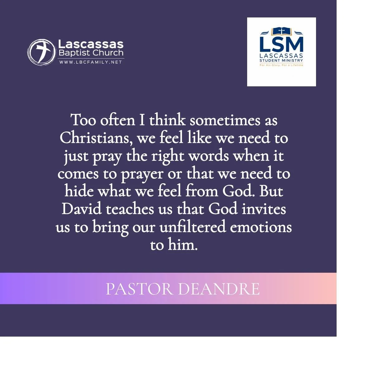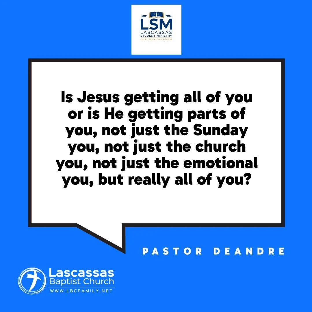 Lascassas Student Ministry seeks to glorify God by coming alongside parents in helping 6th-12th grade students know God through evangelism, His word through discipleship, & His mission through service. We seek to remain Christ-centered in all we do and teach. Our hope is to create space for teenagers to experience genuine relationship with God, self, and others. Though we are all imperfect - we claim the free gift of grace and rejoice in a God who has done what we never could do. If you are in 6th-12th grade or are a parent of a 6th-12th student - we would love to answer any questions you may have about Lascassas Student Ministry. Please browse this site for information or send a message to us and we will be happy to respond.