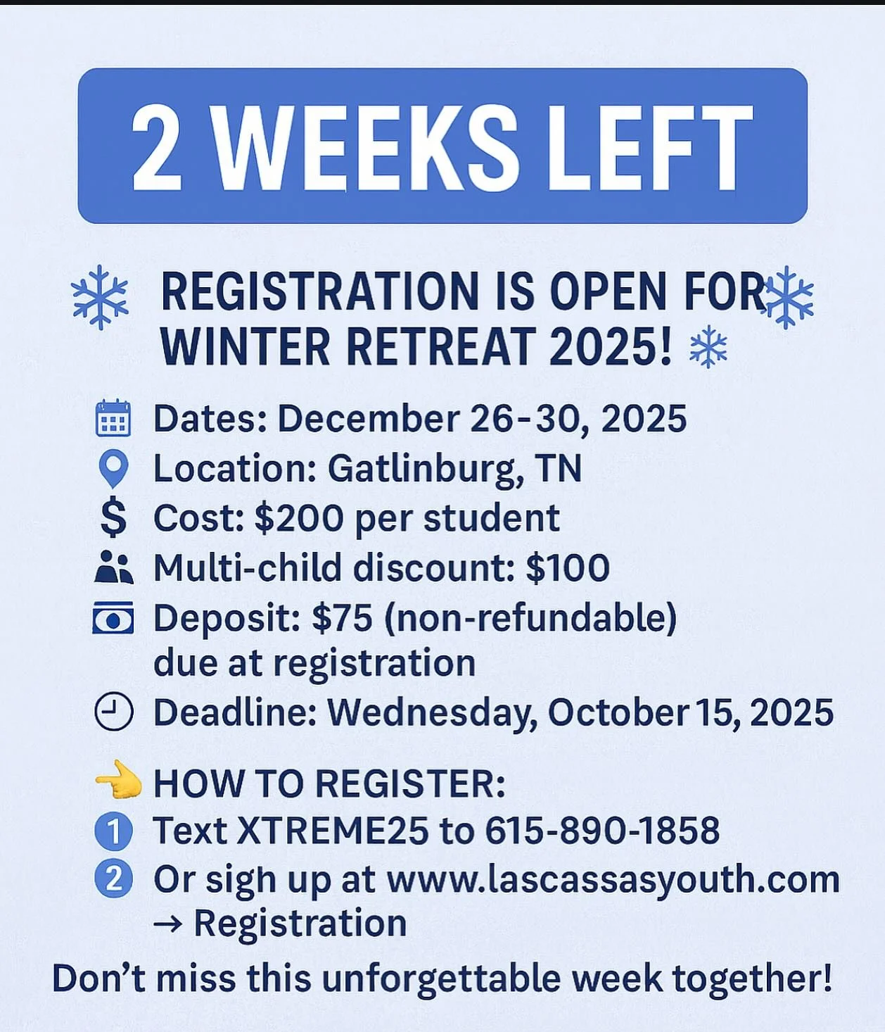Church Phone: 615-890-1858 / / / Youth Email: Lascassasyouth@gmail.com